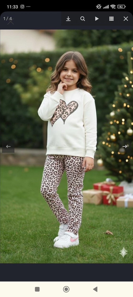 Bol kesim beyaz uzun kollu üst, leopar desenli kalp ve leopar desenli pantolonlu kız eşofman takımı. Yumuşak ve sıcak kumaş, kürk detaylı.