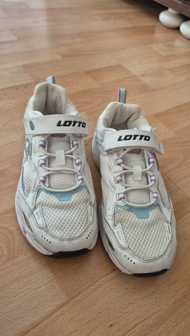 Lotto marka, beyaz renkli, bağcıklı ve lastik tabanlı kız çocuk spor ayakkabısı. Sokak stiline uygun, pastel detaylı rahat model.