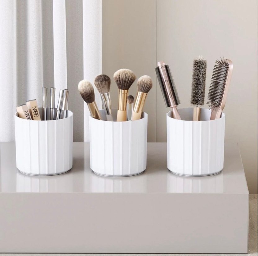 Çok bölmeli beyaz makyaj organizeri, fırçalar ve aletler için düzen sağlar. Kozmetiklerinizi düzenli ve kolay ulaşılır tutar. ️