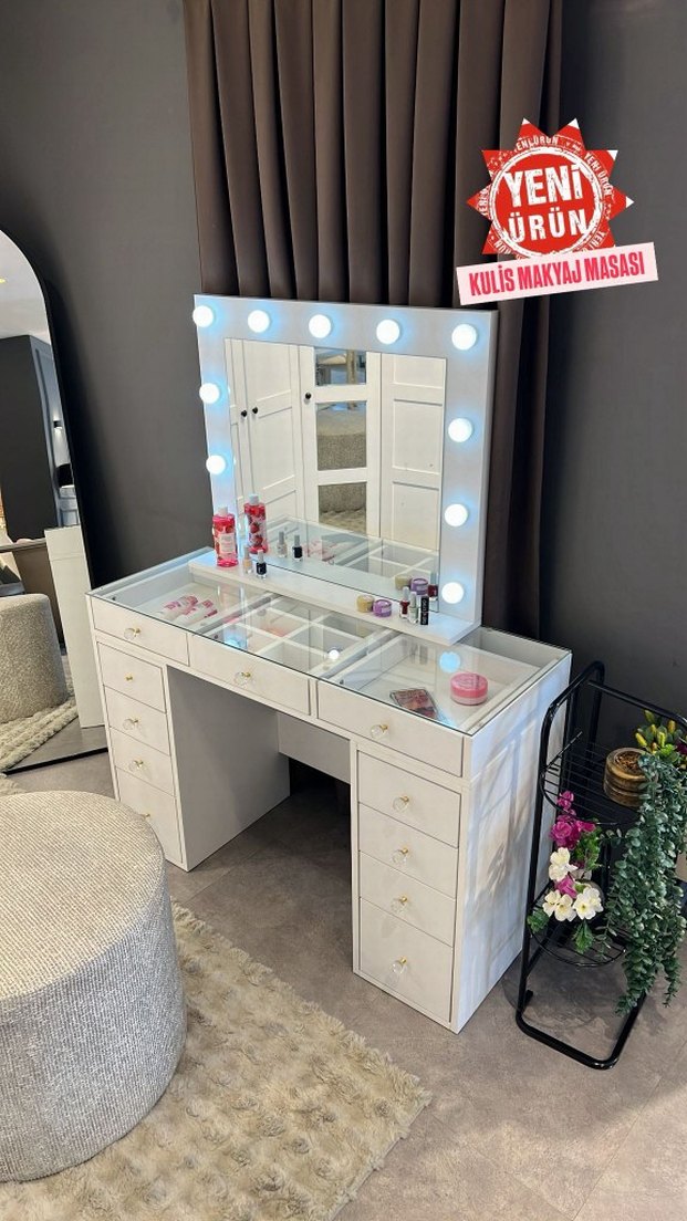 Beyaz Makyaj Masası LED Işıklı