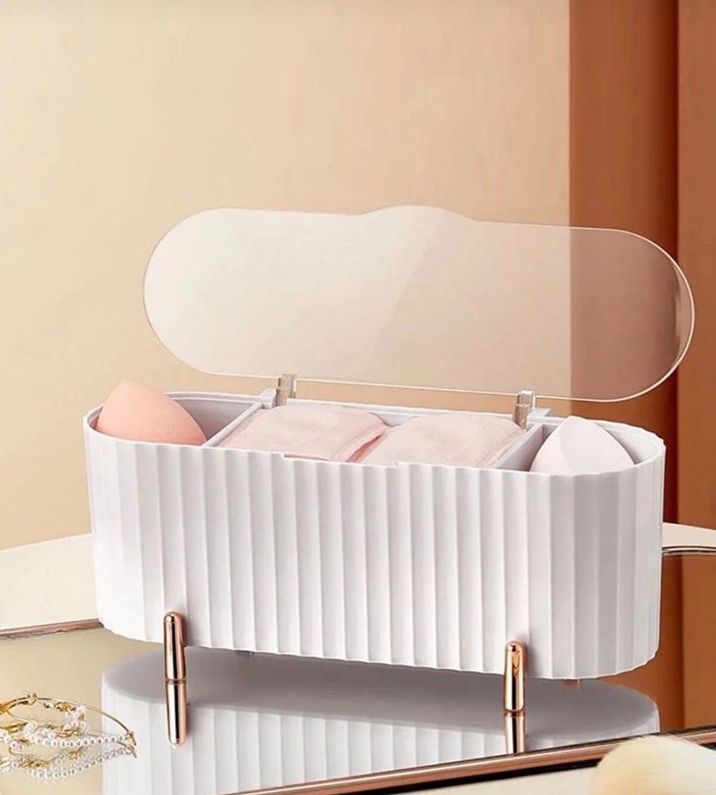 Beyaz Makyaj Organizer Kutusu Kapaklı