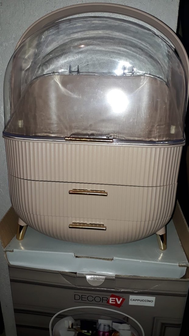 elimde 3 adet bej 1 adet beyaz renk var. Şeffaf kapaklı ve iki çekmeceli beyaz makyaj organizerı, kozmetiklerin düzenli saklanmasını sağlar. Zarif ve kullanışlı.