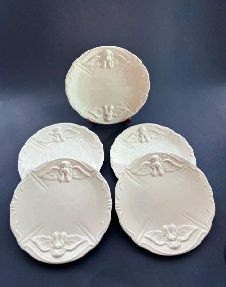 X ADET FiYATI X Madame Coco'nun en özel ve artık üretimi olmayan o nadir serisine ait harika bir parça! '† Bu tabak sadece bir mutfak eşyası değil; üzerindeki yüksek işçilikli çift melek (Cherub) kabartması ve zarif kenar detaylarıyla tam bir dekorasyon objesi. İster şık sunumlarınızda kullanın, ister tabak standı ile konsol üzerinde dekoratif olarak sergileyin.6 adet vardır