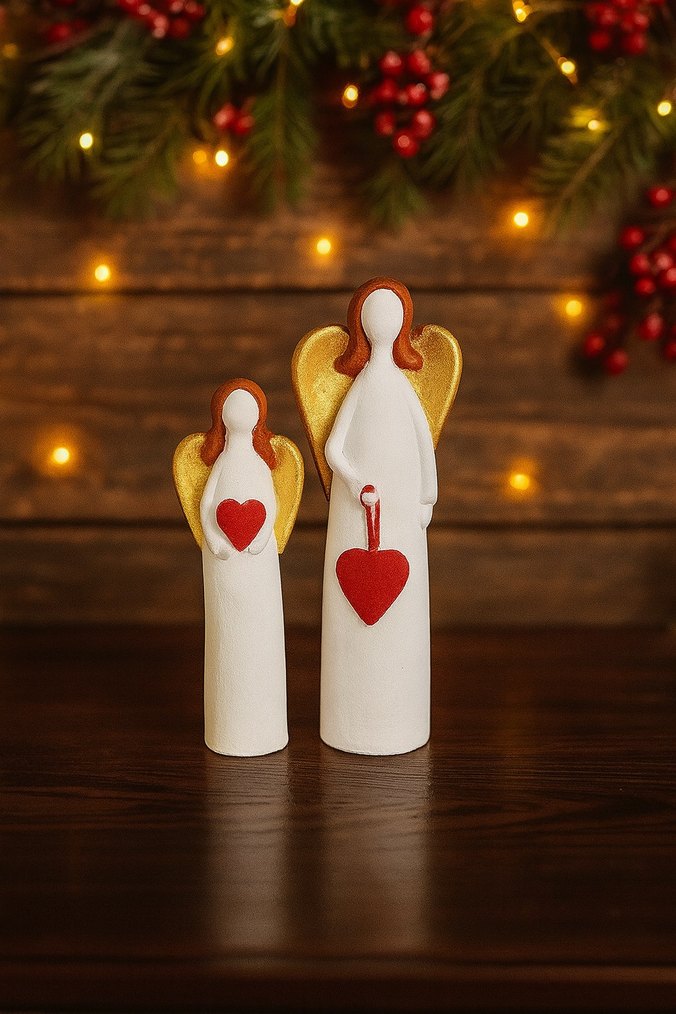 Altın kanatlı ve kırmızı kalpli beyaz melek figürleri, dekorasyon için uygun. yeni yıl hediyeleri ölçüleri ham görselde mevcut dileyene ham hali de gönderilir ham boyasız hali 100 TL