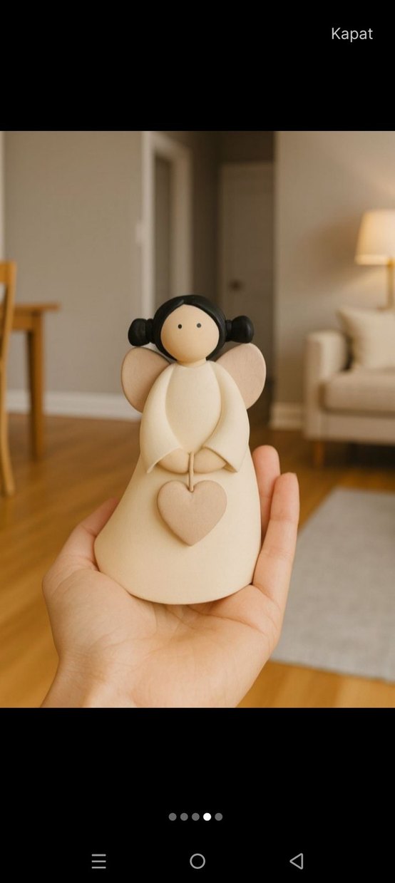 Bu beyaz melek figürü, gri kalp tutuyor ve sade, yumuşak detaylara sahip. Dekorasyon için uygun. ️