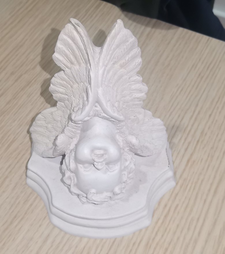 Detaylı kanatlara ve sakin bir ifadeye sahip beyaz melek figürü, dekoratif obje olarak tasarlanmıştır. ️