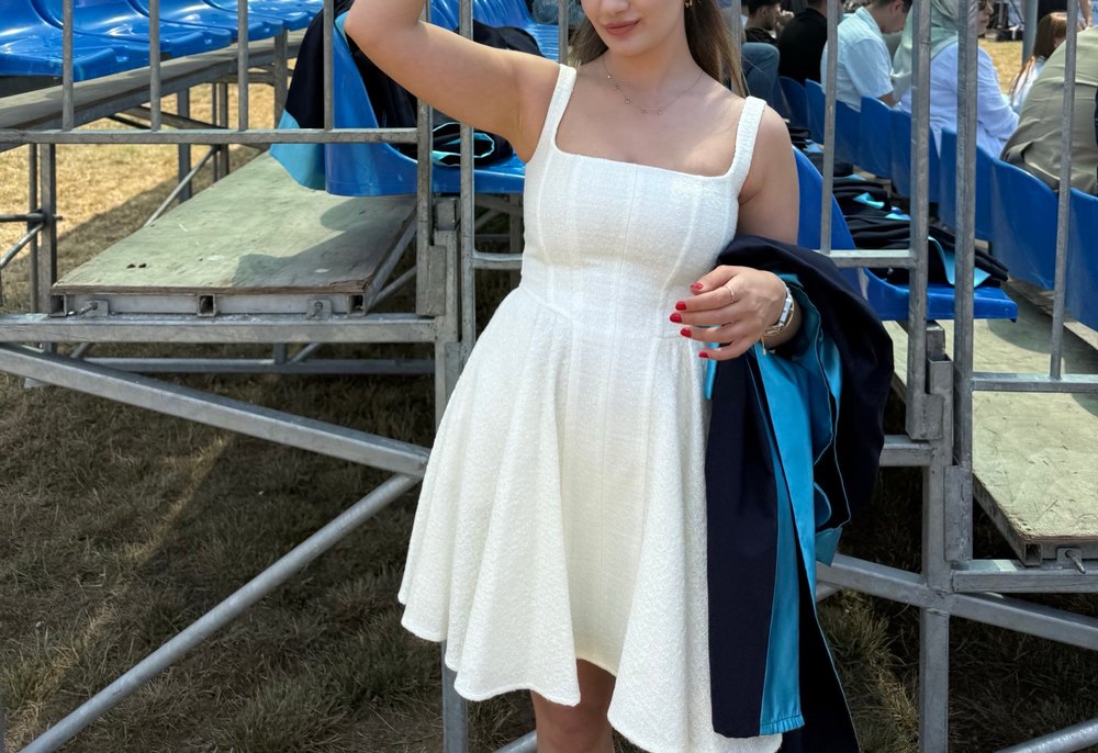 Beyaz, straplez yaka ve drapeli tasarıma sahip, klasik zarafeti yansıtan, mezuniyet ve düğünler için uygun, vücuda oturan midi elbise. ✨
