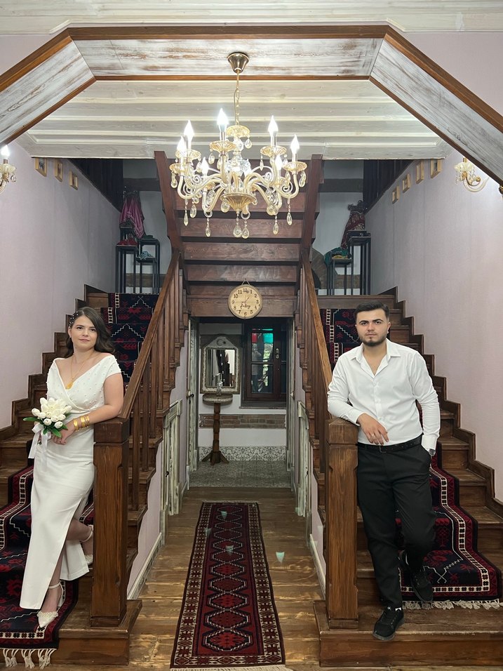 Beyaz renkli, notched lapel yakalı ve askılı kollu midi uzunlukta A-line gelinlik. Klasik zarafet ve modern minimalizmi bir araya getirir. Temiz sadece nikahta kullanıldı