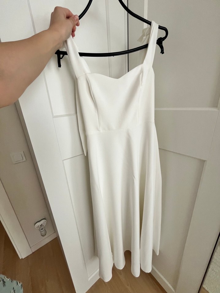 Beyaz Midi Askılı Abiye Elbise