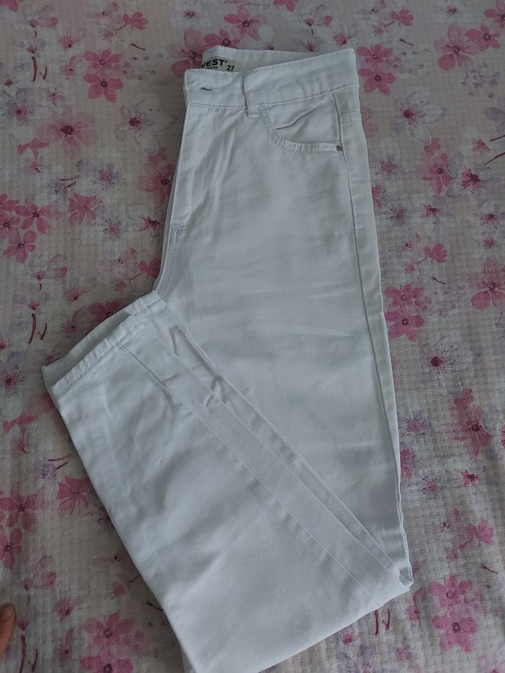 Beyaz Midi Boy Pamuklu Kot Pantolon