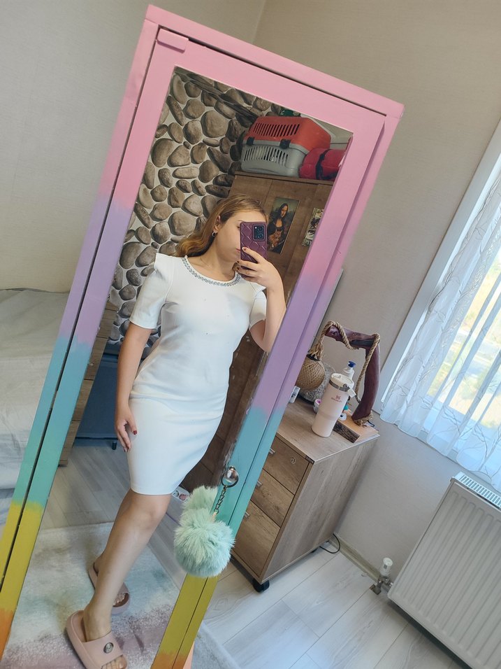 Beyaz yaka detaylı midi hanım hanımcık bir elbise. M-l uyumludur.