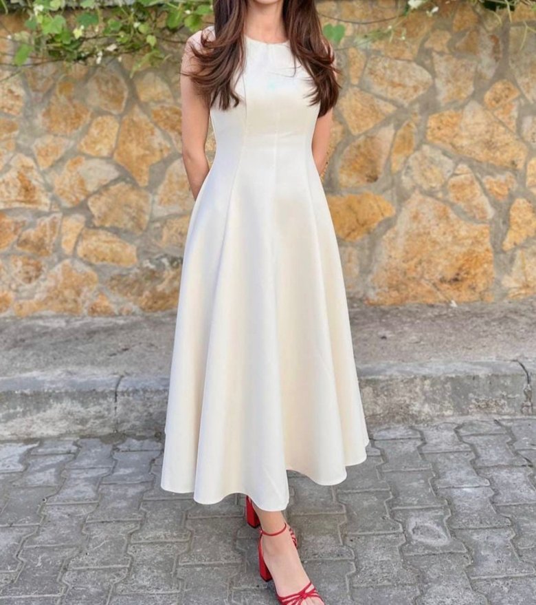 beyaz midi elbise 1 kez giyilmistir nişanda