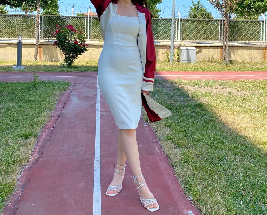 Ürün askılıdır sadece bir kere mezuniyet törenimde giydim