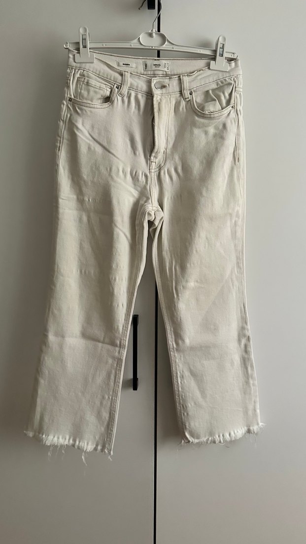 Beyaz Midi Kadın Jean Pantolon