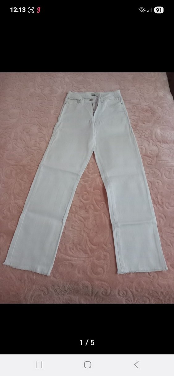 Beyaz midi uzunlukta, regular fit kot pantolon. Denimden üretilmiş, normcore tarzında, günlük kullanıma uygun şık ve rahat bir model. Pastel renkte, desensiz tasarım.