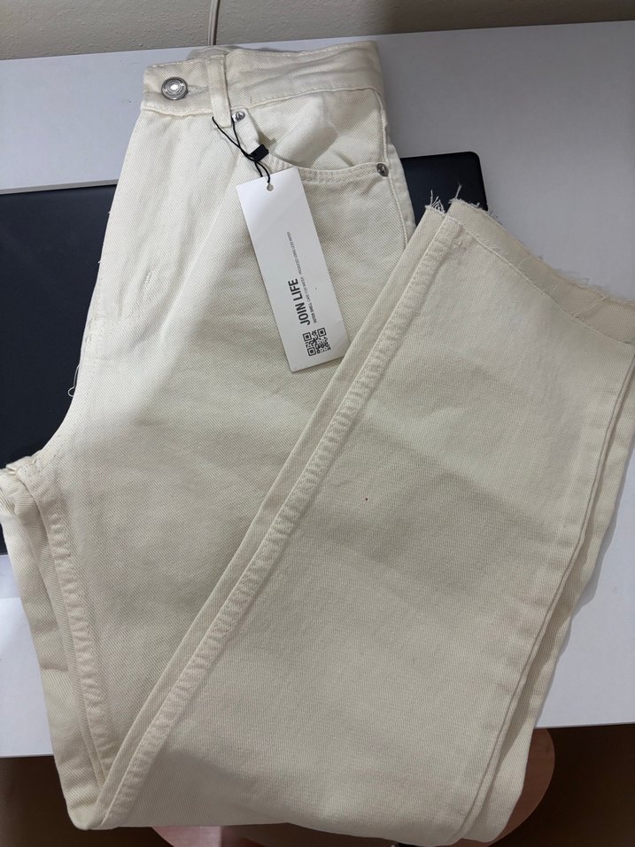 Beyaz, midi boy, düz desenli, sentetik kumaştan üretilmiş, rahat kesim kadın kot pantolon. Sokak modasına uygun, zahmetsiz şıklık sunar.