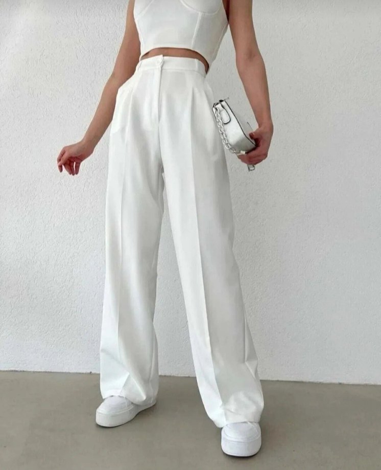 Beyaz Midi Kadın Kumaş Pantolon