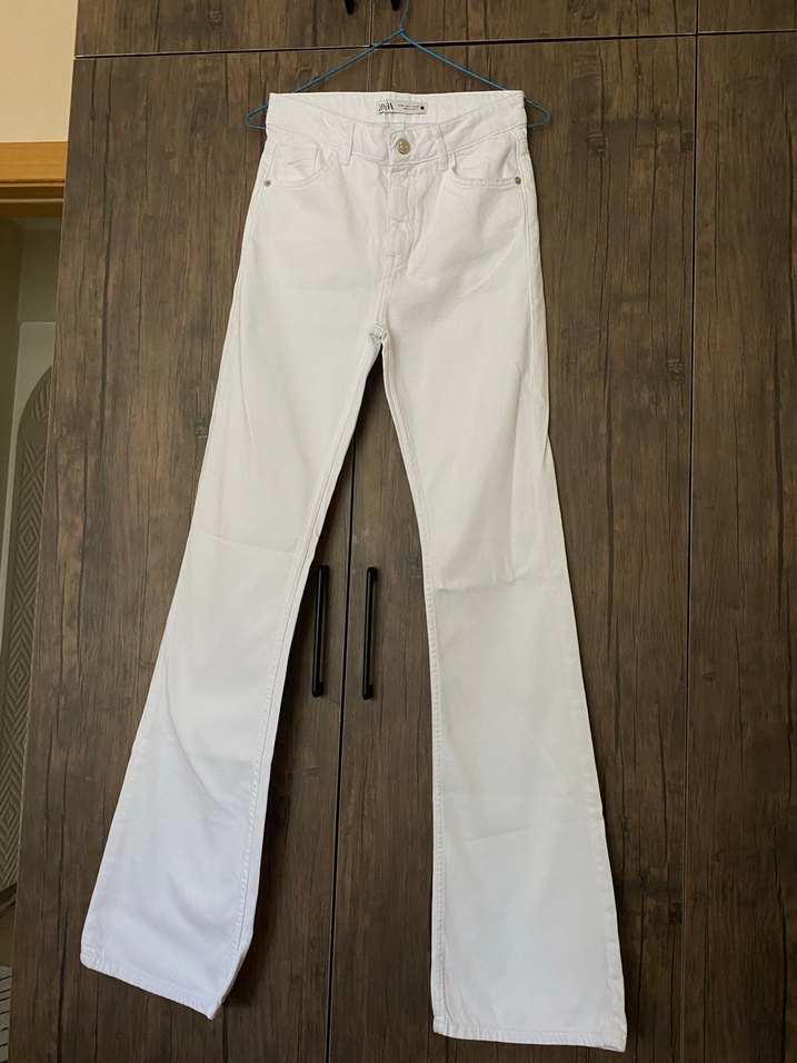 Beyaz pamuklu midi kumaş pantolon, düzenli kesim ve minimalist desenle. Trendy günlük sokak stiline uygun, zahmetsiz şıklık sunar.