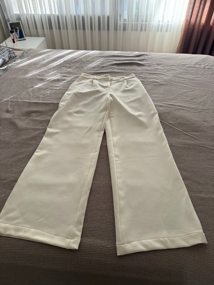 Beyaz kumaş, regular fit kadın kumaş pantolon. Hiç giyinmedim