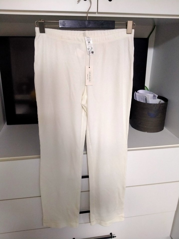 Beyaz i uzunlukta, bol kesim ve ipeksi kumaştan yapılmış kadın kumaş pantolon. Rahat ve gündelik kullanıma uygun, zahmetsiz şıklık sunar. not iç gosteriyo bikini ualti olarak veya üstüne uzun bişey giyerek isteğe bagli