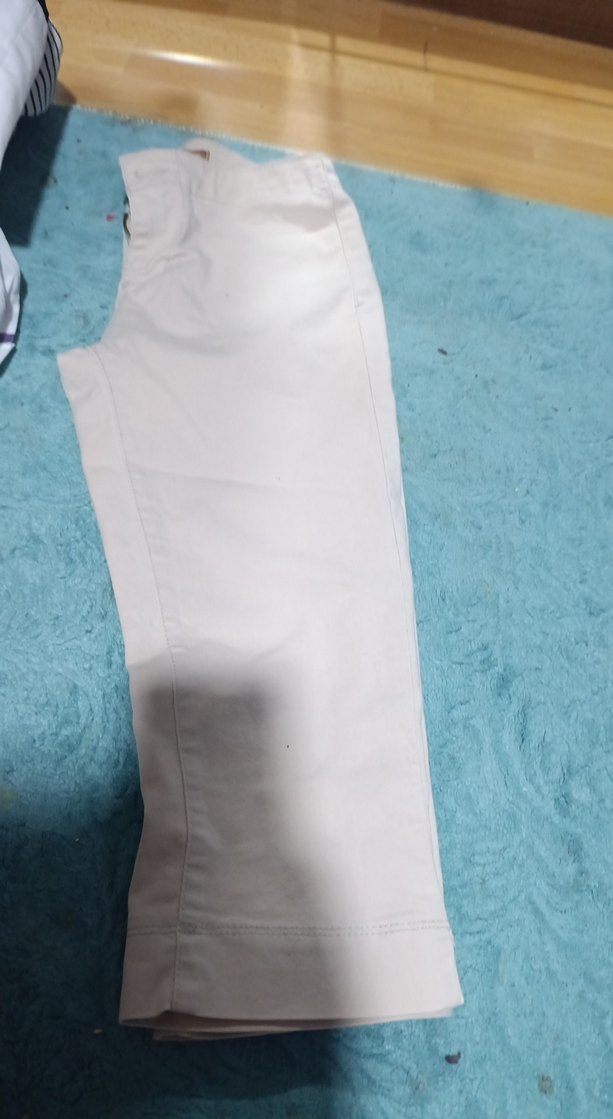 Beyaz midi boy, regular kesim kadın kumaş pantolon. Düz, fermuarlı detaylı ve yumuşak sentetik kumaştan üretilmiştir. Günlük kullanıma uygundur.