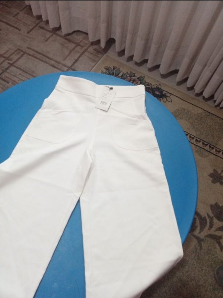 Kadınlar için beyaz, midi boy pamuk pantolonlar, rahat bir regular fit sunar. Düz ve desensiz tasarımıyla günlük kullanımda konfor ve şıklığı bir arada sağlar.
