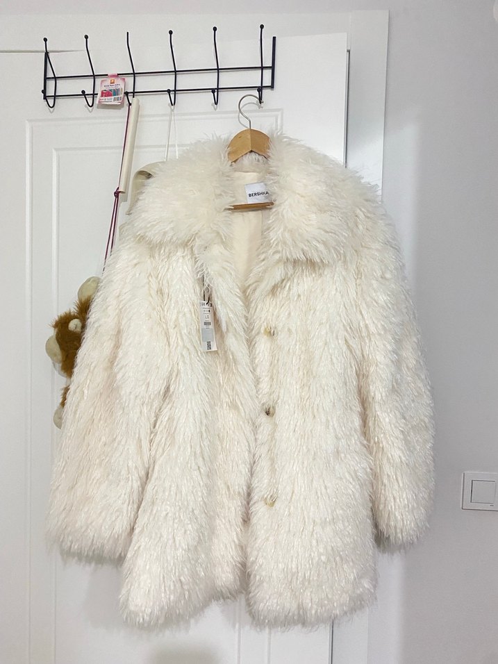 Beyaz Midi Kadın Suni Kürk Ceket BERSHKA