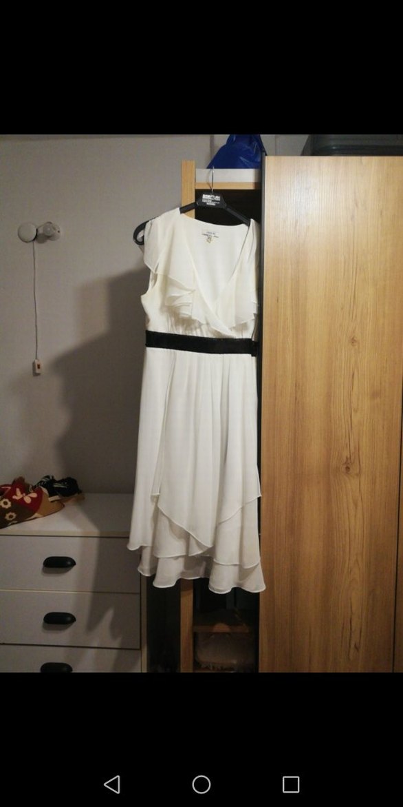 Beyaz Midi Katlı Elbise Siyah Kemerli