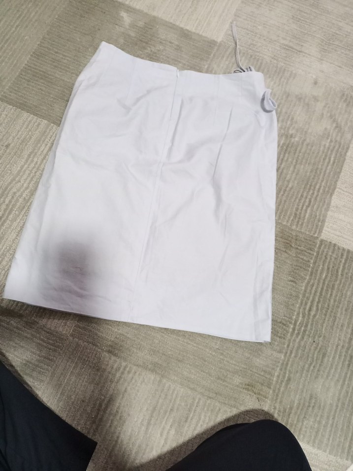 Beyaz midi hamile eteği, rahat keten kumaştan ve düz, desen içermeyen tasarımla günlük kullanıma uygundur.