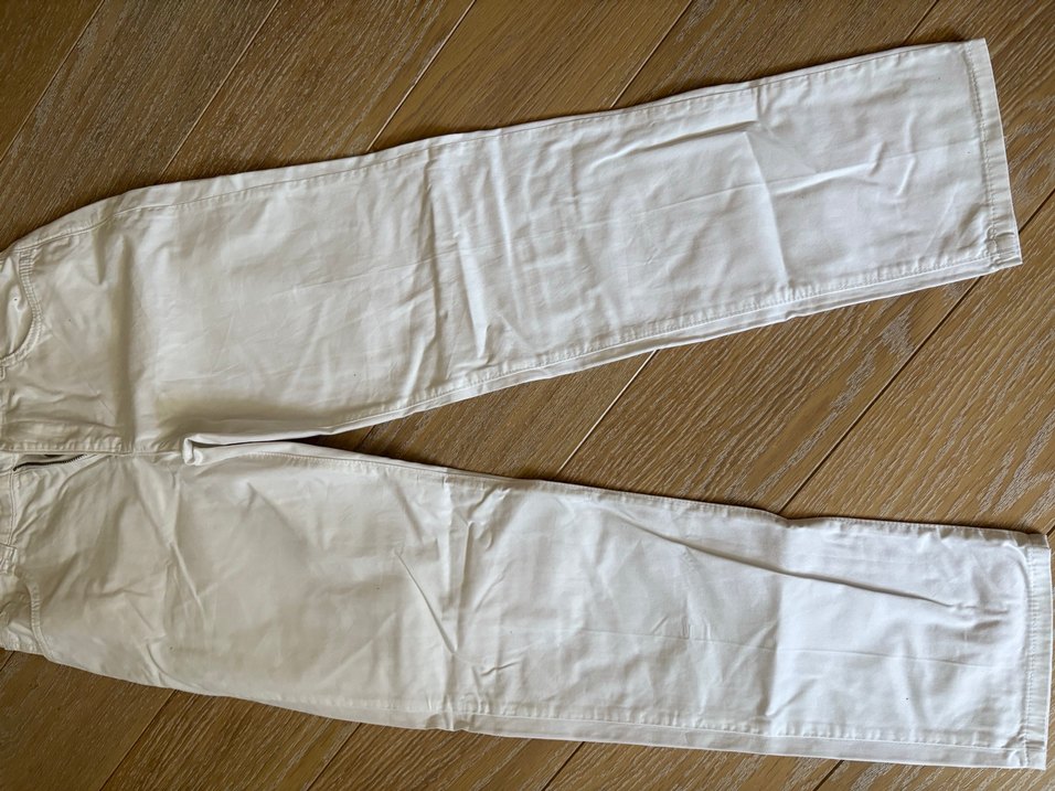 Beyaz keten kumaştan, normal uzunlukta ve regular fit kadın pantolon. Minimalist ve sade tasarımıyla günlük kullanıma uygundur.