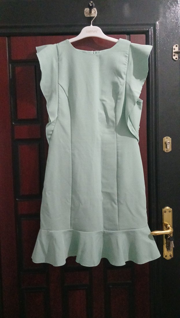 Beyaz midi elbise, kolsuz ve fırfır detaylıdır. Regular fit kesimi ve yuvarlak yakasıyla minimalist ve şık bir görünüm sunar.
