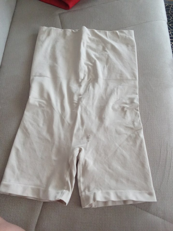 Yumuşak keten kumaştan üretilmiş, beyaz midi boyda, vücuda oturan hamile şortu. Minimalist ve normcore tarzıyla günlük kullanıma uygun.
