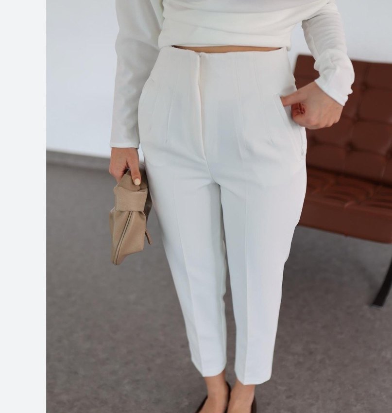 Beyaz midi uzunlukta kadın pantolon, regular fit kesim ve düz sentetik kumaştan üretilmiştir. Ofis ve sokak stili için uygun, zahmetsiz şıklık sunar. çok az kullanıldı iç göstermz süper yüksek bel