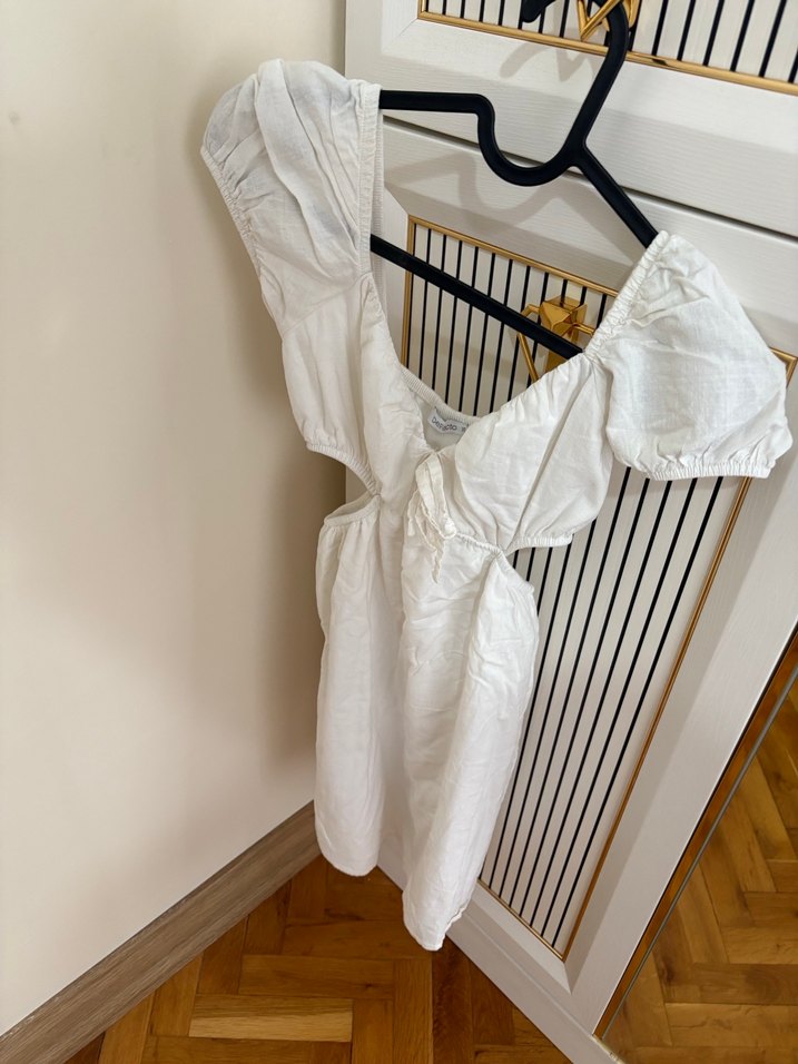 Beyaz midi uzunlukta, v yaka, bohem tarzda, ince askılı ve vücuda oturan mini gelinlik. Trendsetterler için ideal.