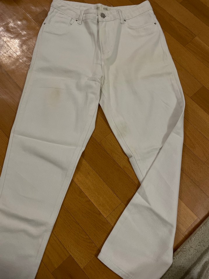 Beyaz, midi boy, regular fit kadın kot pantolon. Düz ve minimalist tasarıma sahip, günlük kullanım için uygun sentetik kumaştan yapılmıştır.