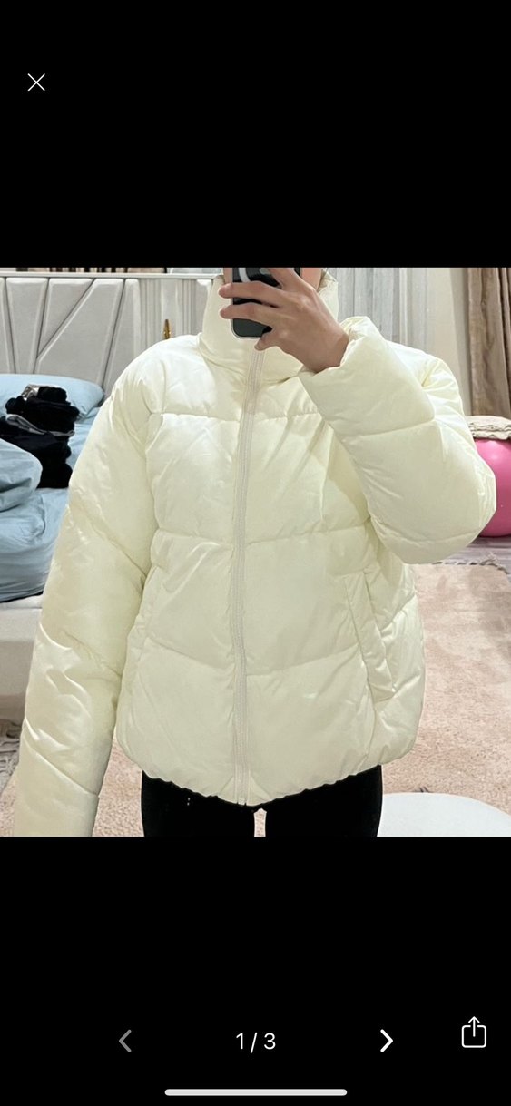 Beyaz, fitted kadın kışlık mont yüksek yaka ve uzun kolludur. Şişme, desensiz tasarımı rahat ve pastel tonludur, trend sokak stiline uygundur. ❄️