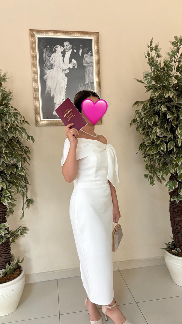 Beyaz Midi Straplez nikah Elbisesi