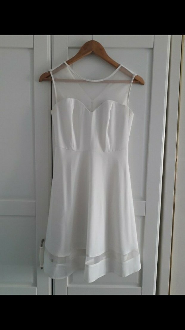 Beyaz Midi V Yaka Kolsuz Abiye Elbise