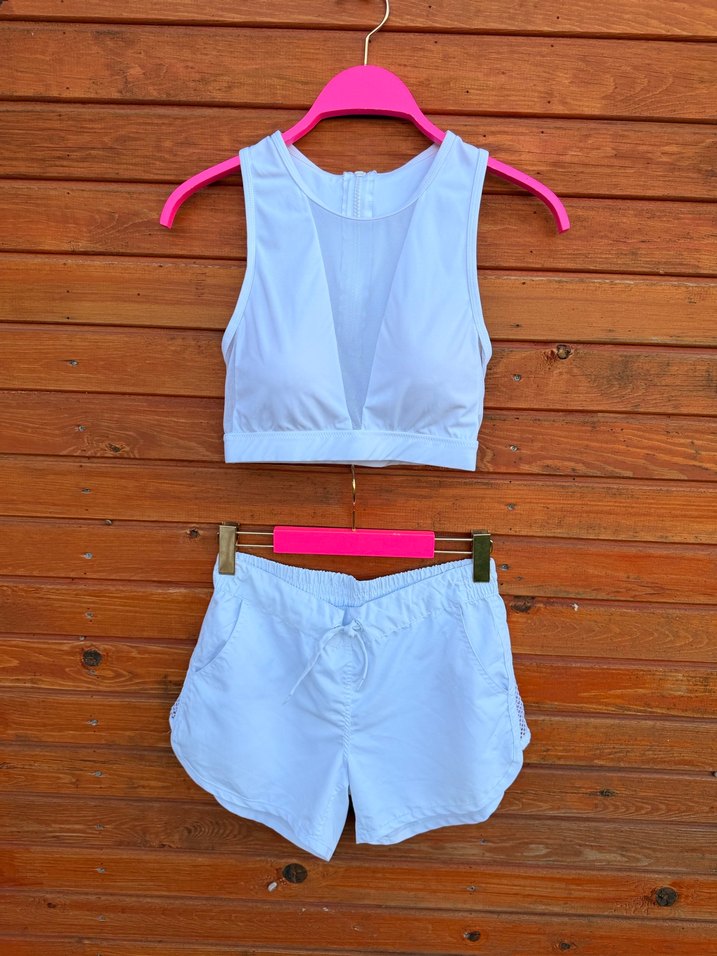 Beyaz Mini Atletik Kadın spor sütyen ve şort takımı