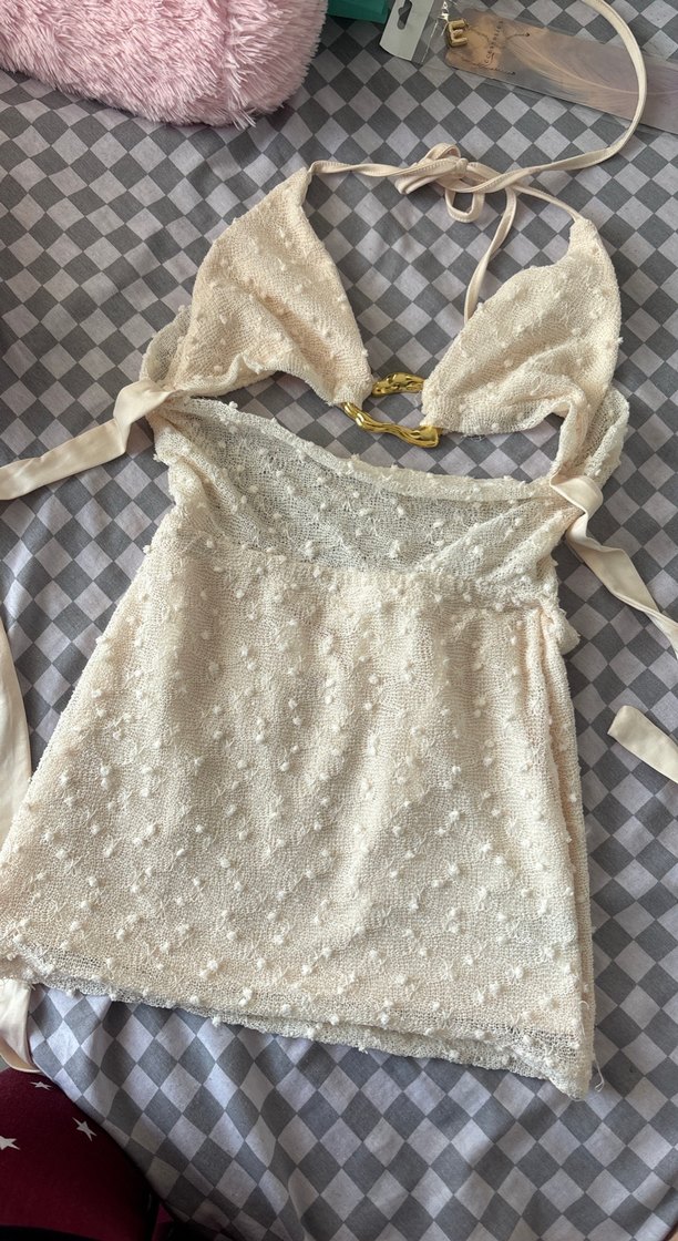 Beyaz Mini Bohem beyaz Elbise