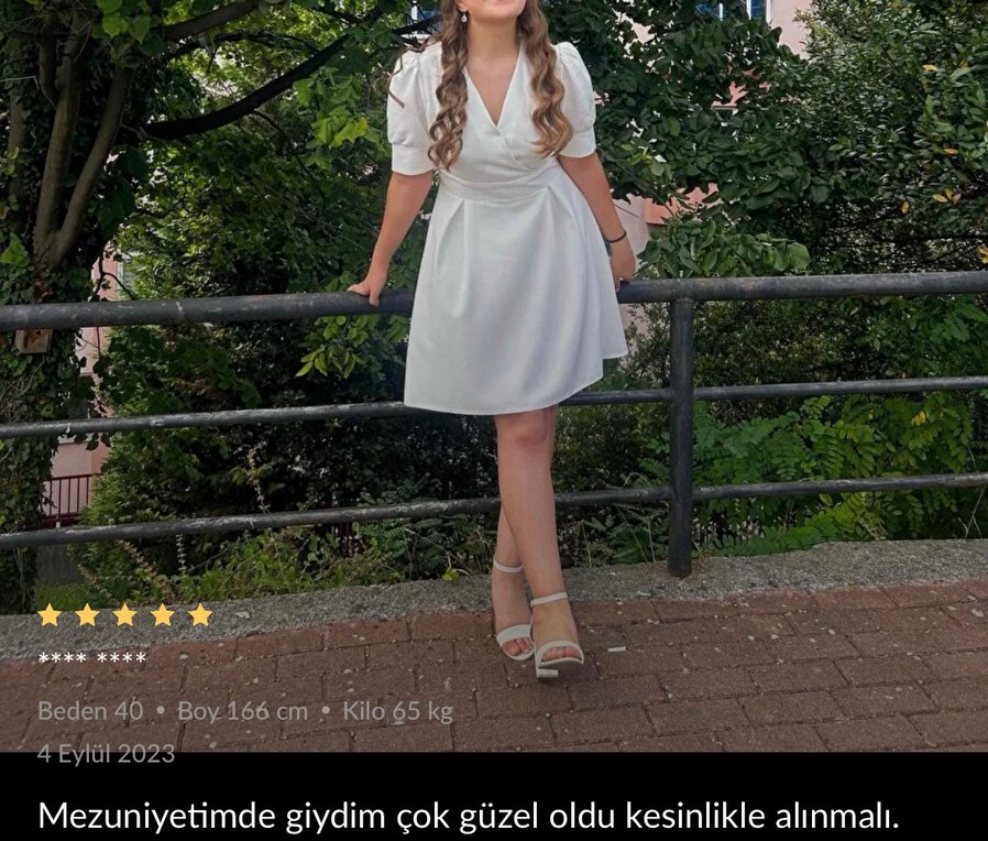 Sıfır ürün hiç giyinmedim fotoğrafları örnek olsun diye ekledim. Kısa süreliğine fiyatını düşürdüm. Beyaz mini elbise, drapeli tasarımı, bol kesimi, askılı kolları ve V yakası ile minimalist sokak stili sunar.
