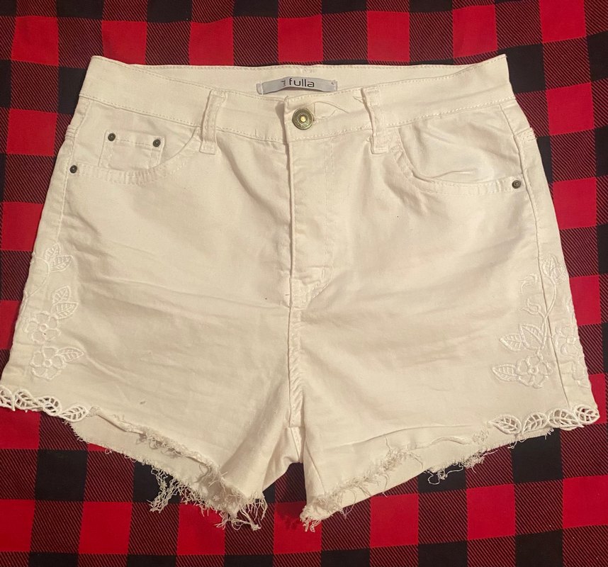 Beyaz Mini Düğmeli Kadın Kot Şort