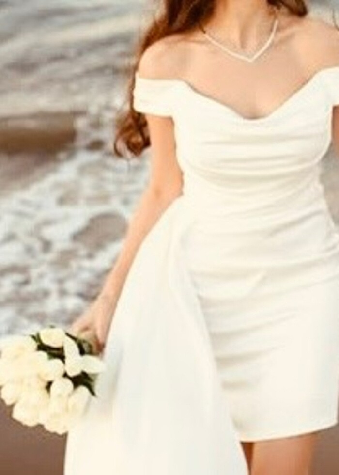 Beyaz mini yandan kuyruklu zarif elbise sırt detayı ve omuz detayı mevcuttur. Ürün iki kere giyildi. 34 bedene göre tadilat yapıldı. Boy 168 kilo 52