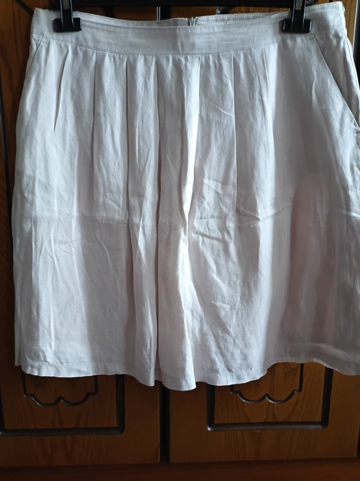 Bu beyaz mini kısa eteği, rahat kesimi ve pile detaylarıyla nefes alabilir keten kumaştan üretilmiştir. Günlük sokak stili için minimalist ve sade bir tasarıma sahiptir.
