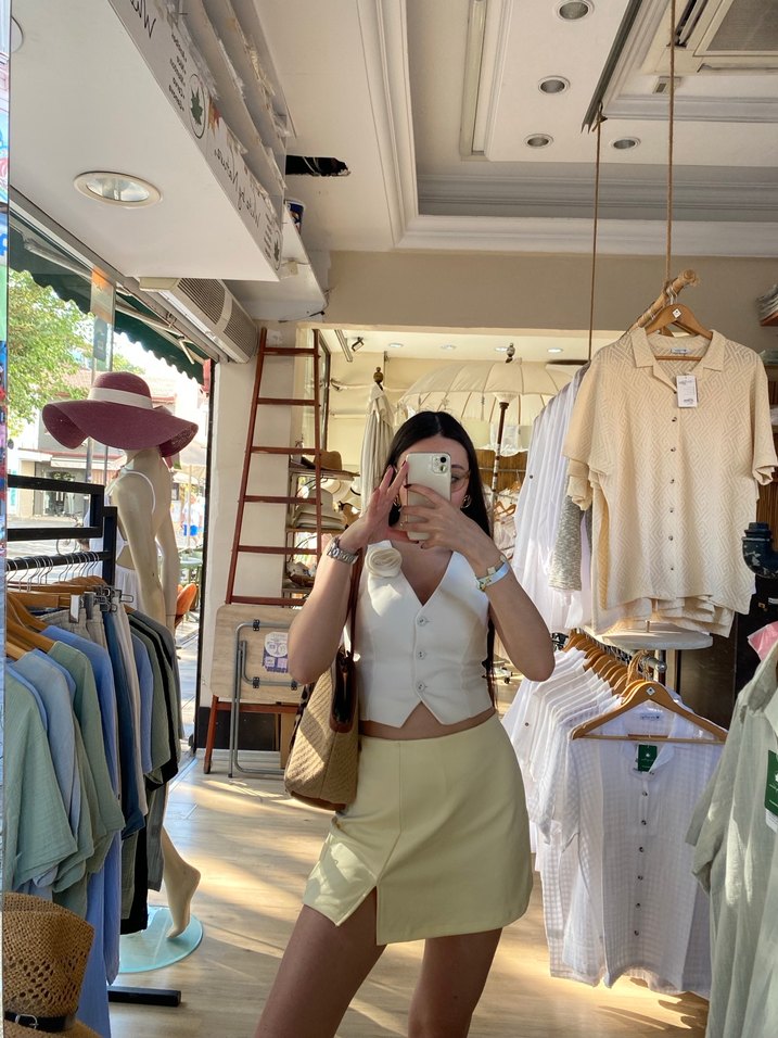 Beyaz mini etek, ince kesim ve ipeksi dokusuyla trend sokak stiline uygun, rahat ve şık bir görünüm sunar. Günlük kullanım için idealdir.