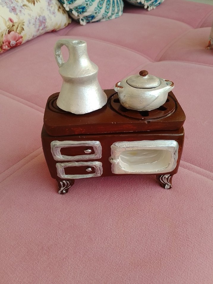 Beyaz Mini Fırın ve Çaydanlık Dekoru soba buhurdanlik