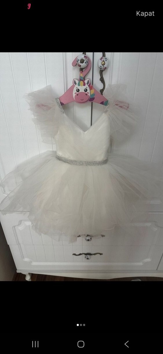 Beyaz Mini Gelinlik Tül Detaylı