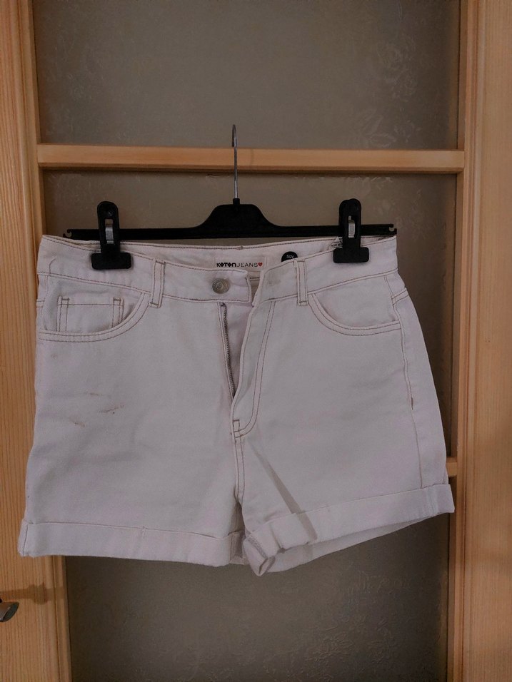 Beyaz mini uzunlukta, bol kesim kadın denim şort. Sokak modasına uygun, desen içermeyen sade tasarımıyla günlük kullanıma uygundur.