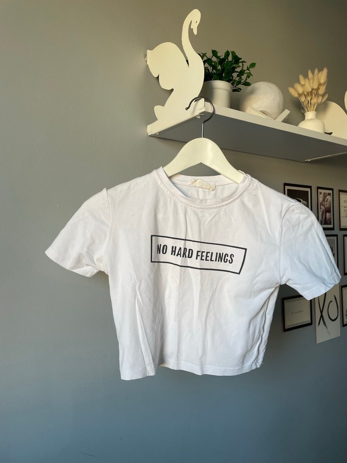 Beyaz Mini Kadın Tişört - No Hard Feelings crop