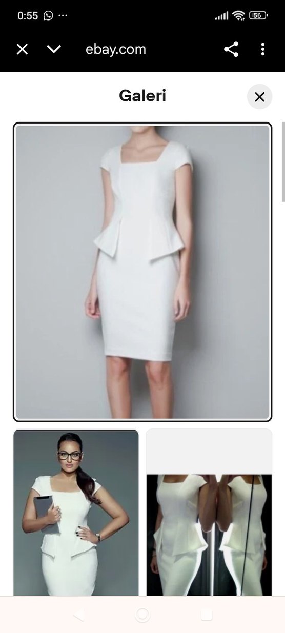 Beyaz mini kalem elbise, kare yaka ve kısa kolludur. Düz ve şık sentetik kumaştan yapılmıştır. Ofis için modern ve zarif bir görünüm sunar. ✨